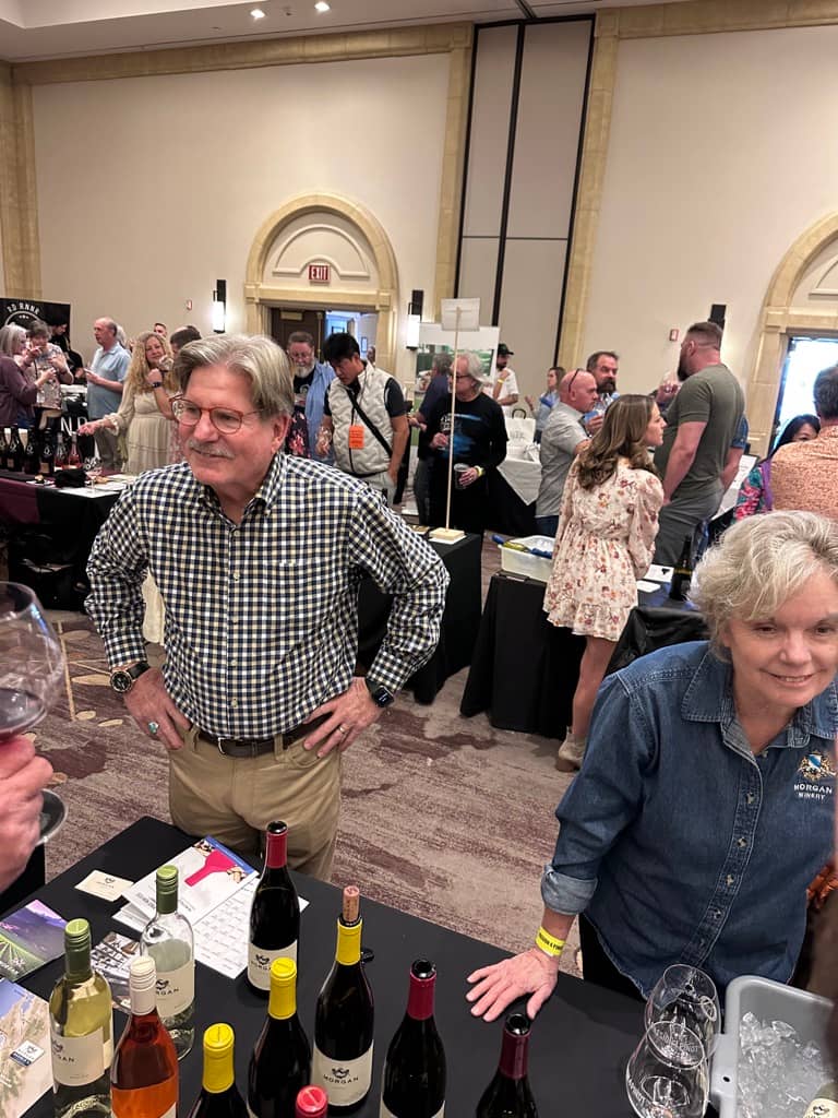 There is some great history in the Santa Lucia Highlands and fabulous stories. One of the stories I adore is Dan Morgan Lee from Morgan Winery. Walking up to him, I appreciated he was wearing an Apple Watch on one arm and an authentic watch on the other. So I walked up to him and shared my struggle gathering data from my Apple Watch while also wanting to wear my genuine watch. He has been making wine for over 30 years. Early in his career, he talked with a banker about getting Morgan Winery off the ground, and eventually, the banker became his wife.
